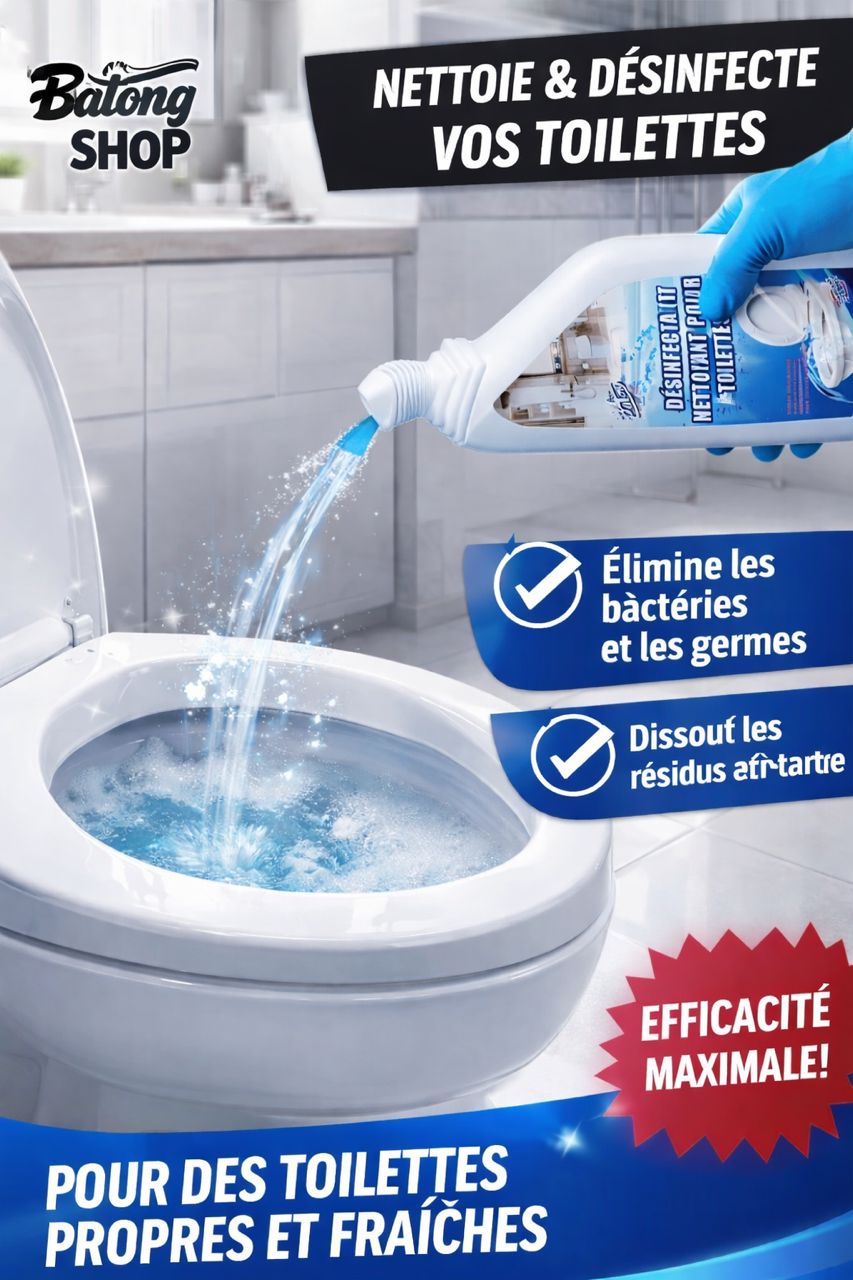 Nettoyant pour Toilettes et Surfaces Céramiques (Formule Détartrante Puissante & Bactéricide)